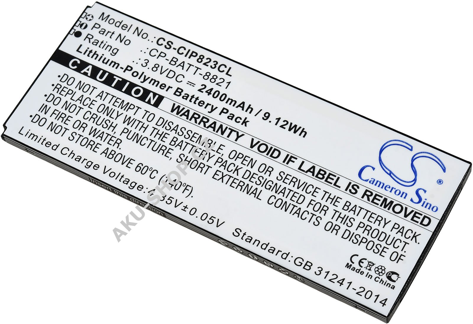 (3,8V, 2400mAh/9,1Wh)