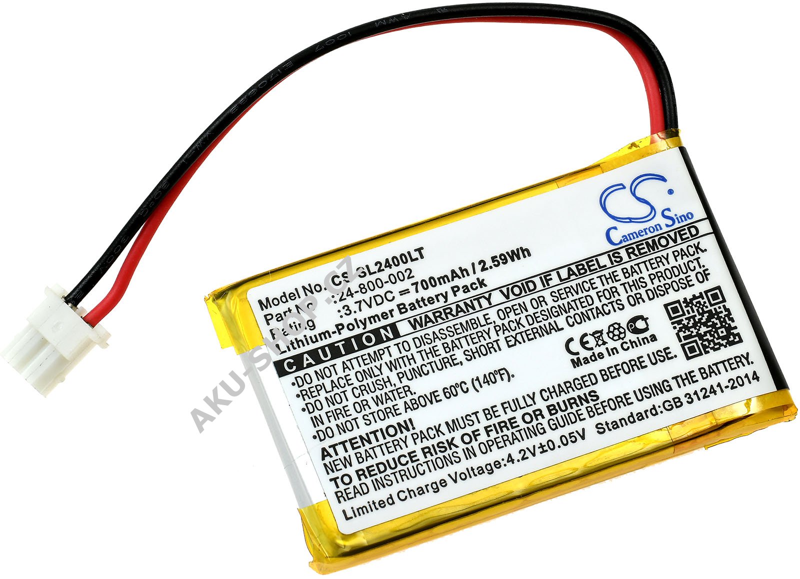 (3,7V, 700mAh/2,6Wh)