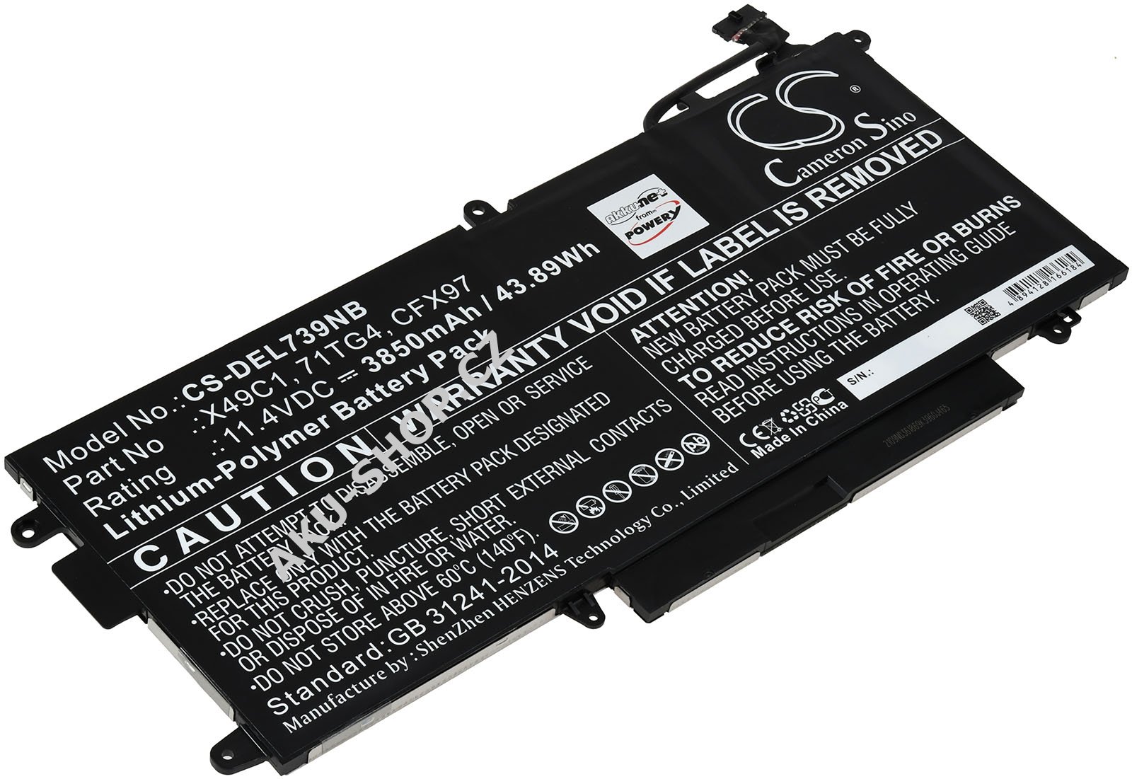 (11,4V, 3850mAh/43,9Wh)