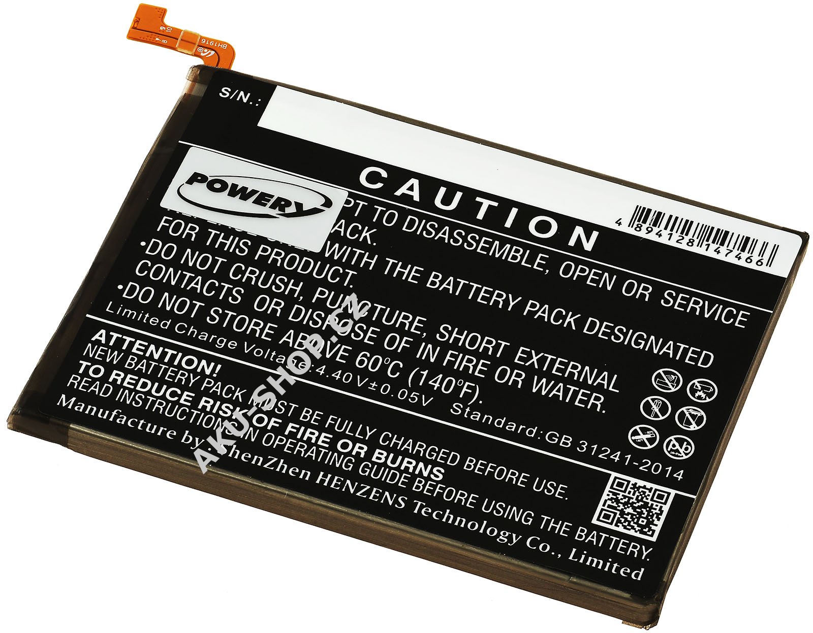 (3,7V, 890mAh/3,3Wh)