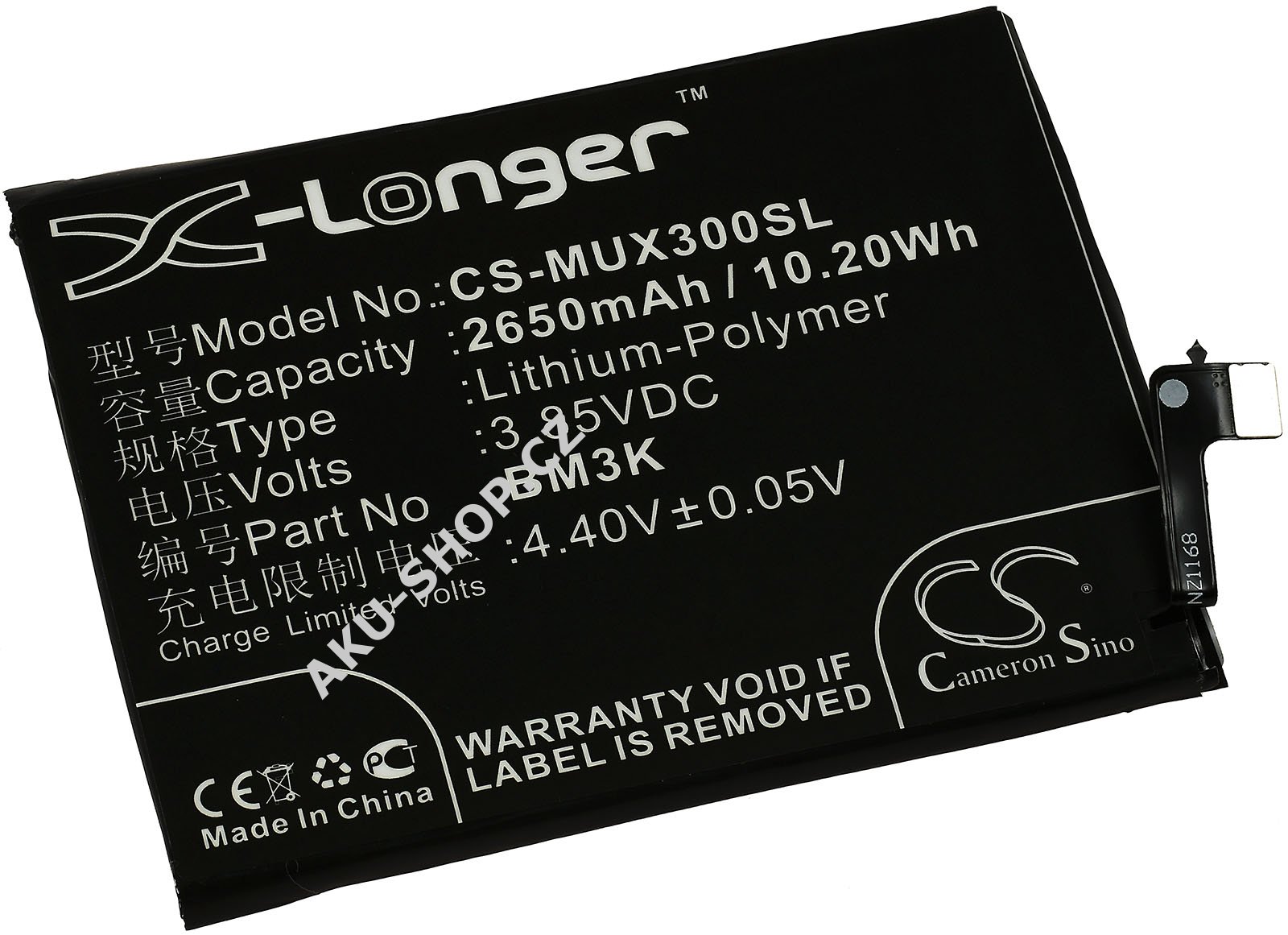 (3,85V, 2650mAh/10,2Wh)
